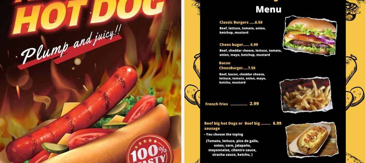 cheddar cheese,Bacon, lettuce, tomato, onion, corn , red onion ,sauerkraut ,mayo, ketchup, mustard,cilantro sauce,siracha sauce/Beef , queso cheddar, Bacon, lechuga, tomate, cebolla, maíz , cebolla morada en vinagre mayonesa, ketchup, mostaza, salsa de cilantro , salsa de siracha , salsa picante